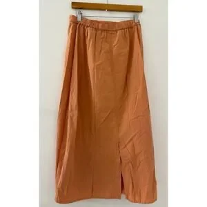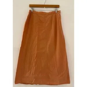 Excellent condition. Flax Lightweight cotton midi skirt features a textured weave in a vibrant burnt orange hue. Designed with a flat front waistband and an elasticized back for a comfortable fit, A-line silhouette and breathable fabric. Length 32in, waist 16in.