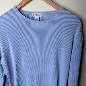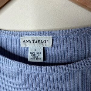 Vintage Ann Taylor 100% Silk Baby Blue Ribbed Crewneck Sweater Long Sleeve Large