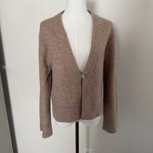 Abercrombie & Fitch | Women’s Wool Blend One Button Relaxed Fit Cardigan Sweater in a gorgeous & trendy beige camel brown. Relaxed fit with slight flare sleeves and a slightly cropped length. Cozy & comfy. Size medium.