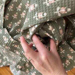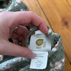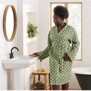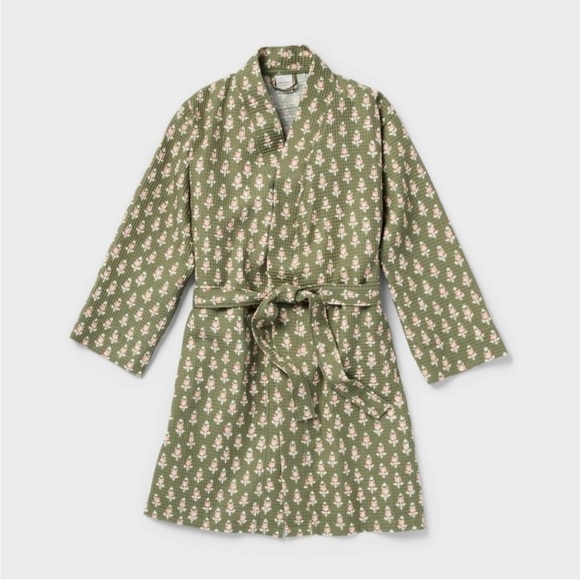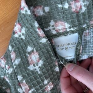 Threshold floral waffle robe green pink s/m cotton