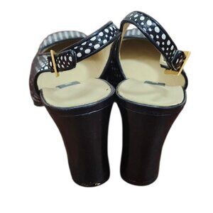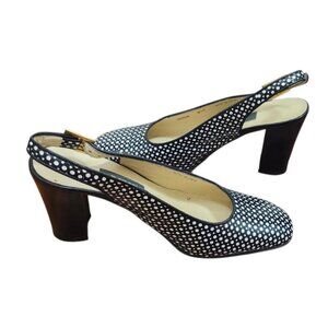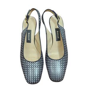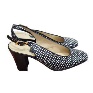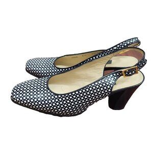 Bally Black White Polka Dot Leather Slingback Heels Made in Italy Women 8.5 C