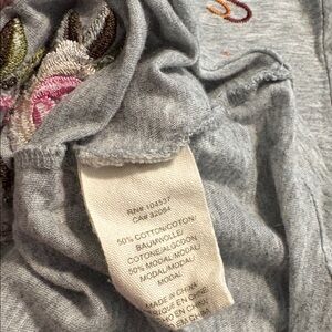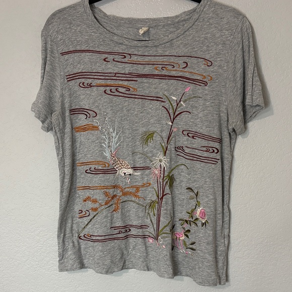 Tiny Koi Floral Embroidered Anthropologie Cotton Modal Shirt S.Gray. Super soft. Size small