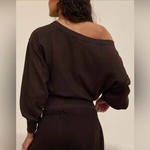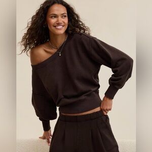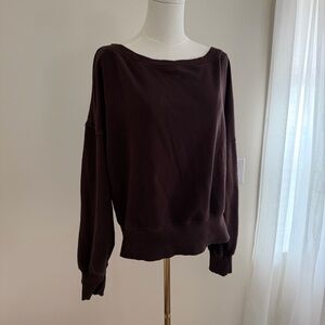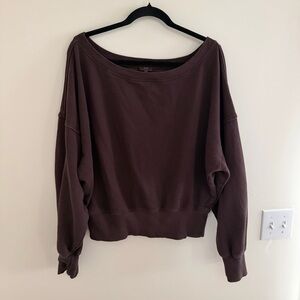 Aerie | Go-To Off The Shoulder Pullover Fleece Sweater/ Sweatshirt in Deep Earth brown. Relaxed/ oversized fit with an off the shoulder boat neck design. Beautiful pre-loved condition, no flaws. Women’s size XL.