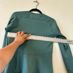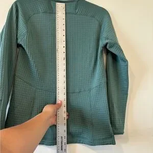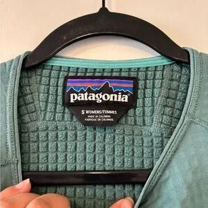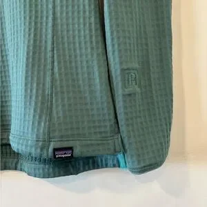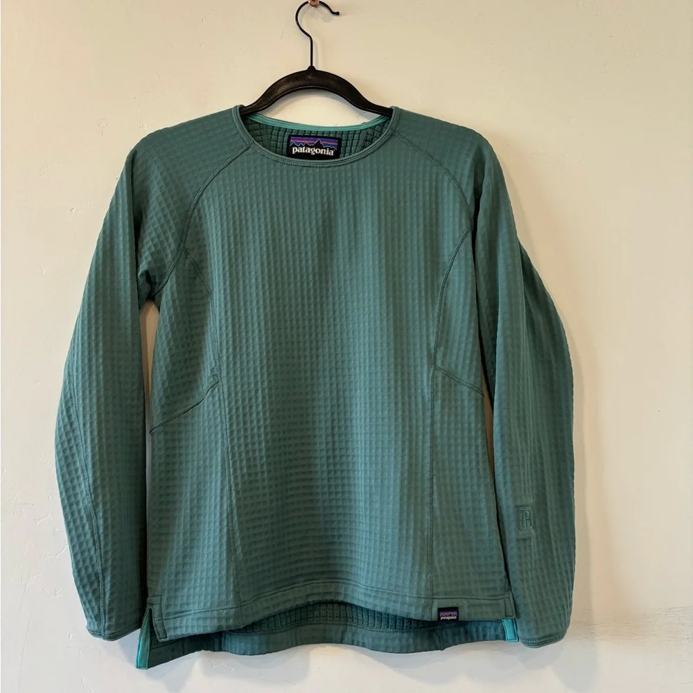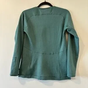 Soft grid-texture fleece pullover with crew neckline. Relaxed women's fit and long sleeves. Small Patagonia logo at neck tag. Lightweight, cozy layering piece.