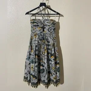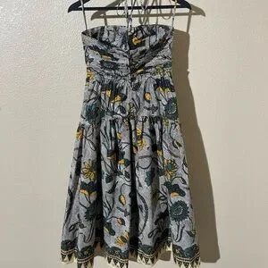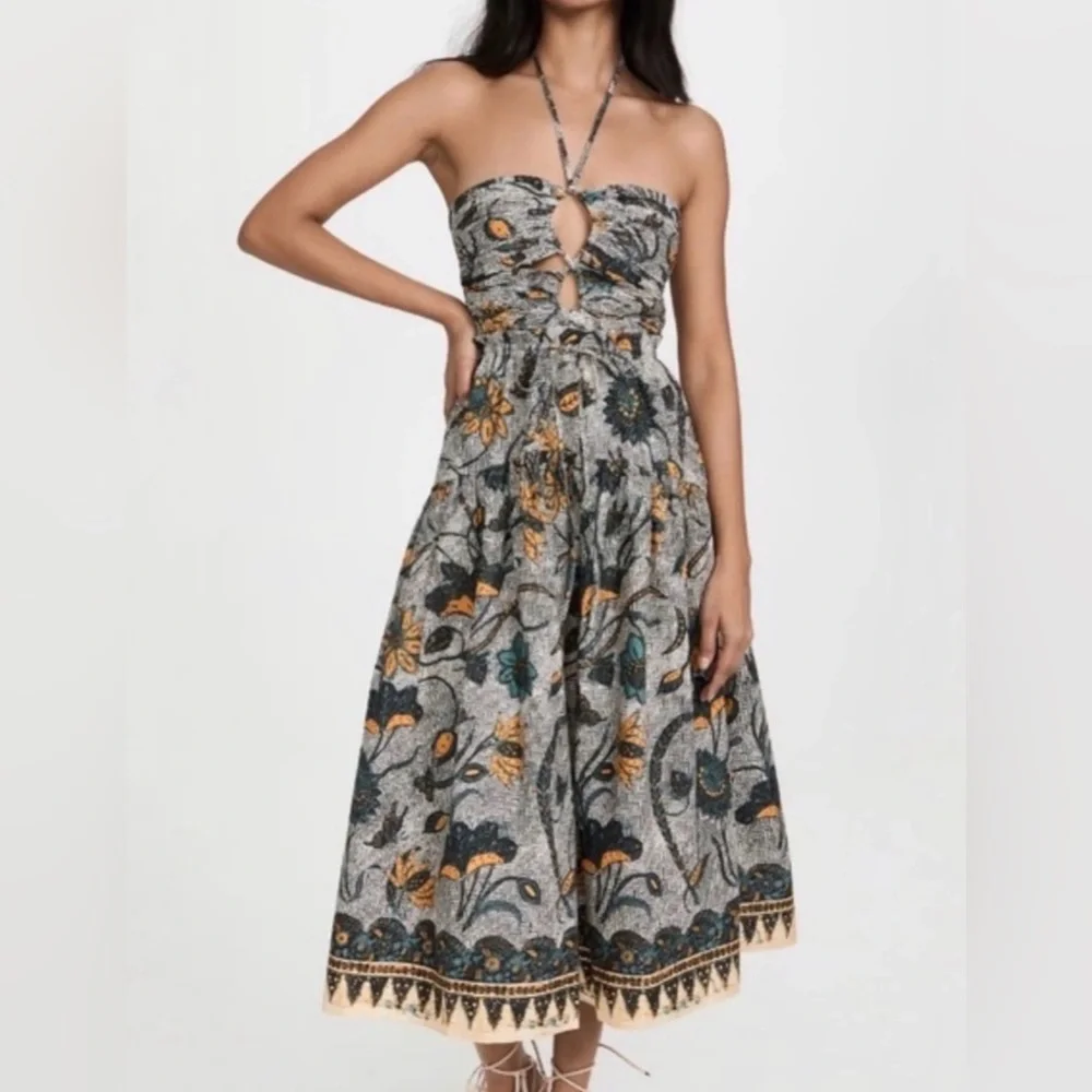 Chic strapless midi dress by Ulla Johnson. Features a unique cut-out design and vibrant floral pattern. Ideal for stylish outings.