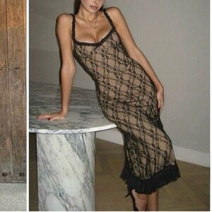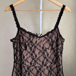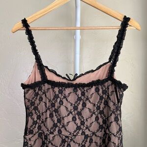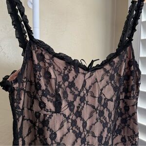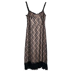 Commense Black Lace Midi Dress Nude Lined Stretchy Cami XL NWT