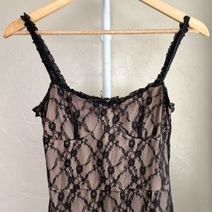 Commense Black Lace Midi Dress Nude Lined Stretchy Cami S NWT