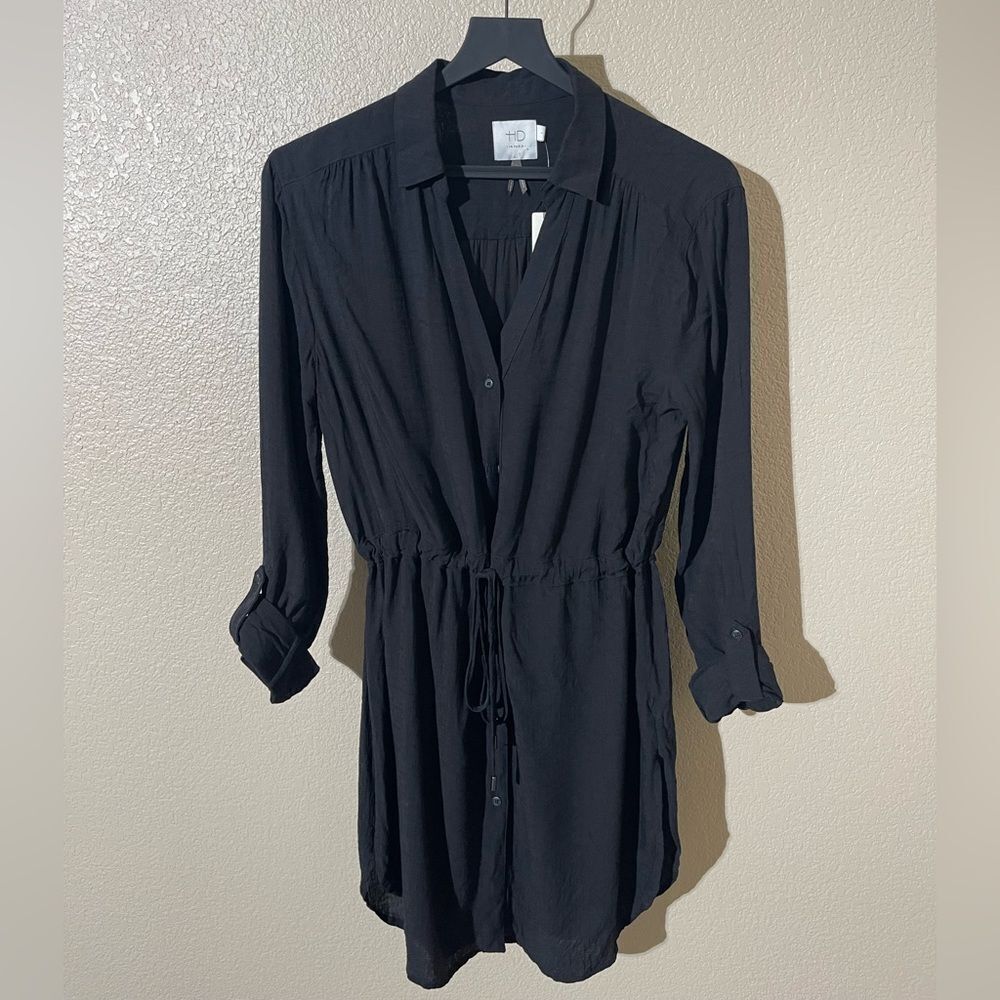 Elegant charcoal dress with textured fabric. Ideal for versatile styling.