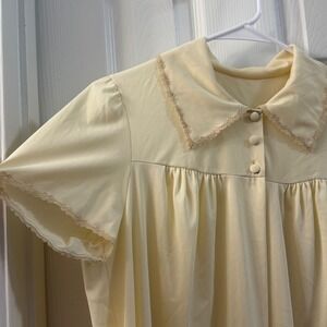 Keywords: vintage nightgown, Vanity Fair lingerie, short sleeve, lace trim, babydoll nightgown, vintage sleepwear, feminine, loungewear, retro, sleep dress, lightweight, bow detail