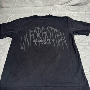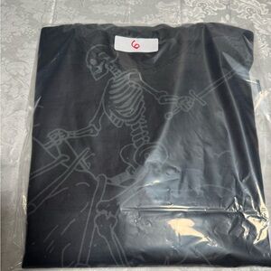 Black tee featuring a skeleton on horseback graphic. Perfect for casual wear.