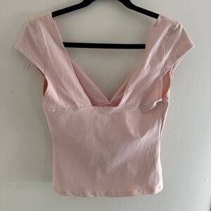 Intimately Free People | Duo Corset Cami Cap Sleeve Deep V Neck Blouse T Shirt. Gorgeous light baby pink color. Size large, like new, never worn.