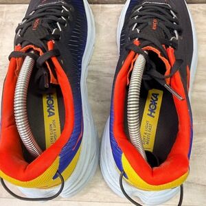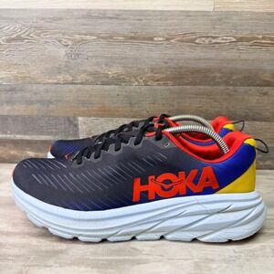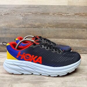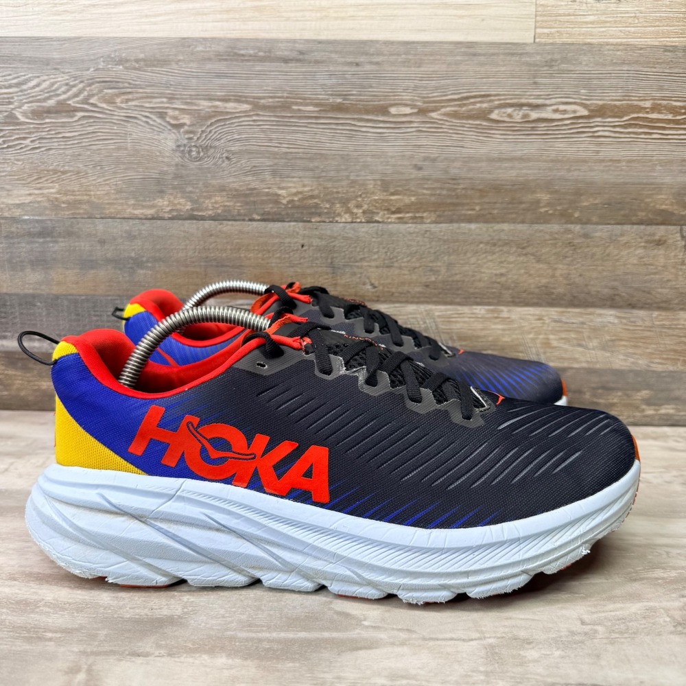 Experience the perfect blend of featherlight construction and responsive cushioning with these Hoka Rincon 3 running shoes. Designed for those who crave speed without sacrificing comfort, they feature a ventilated mesh upper and a signature oversized foam midsole that delivers a smooth, propulsive ride. The vibrant color-blocked heel adds a bold energy to your stride, while the refined pull tab ensures easy transitions. These shoes are in excellent pre-owned condition with minimal signs of wear. Perfect for morning road runs, marathon training sessions, or high-intensity interval workouts.