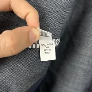 Pre-owned Bonobos slim fit blazer with minimal general wear from prior use. Fabric, seams, lapels, pockets, and hems are clean and intact with no stains, holes, or fraying; buttons and buttonholes are secure and functional. Interior lining and pocketing are clean with no tears or loose stitching. Jacket shows light wrinkling from storage and handling; original retail tags and packaging are not included.