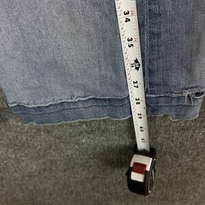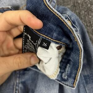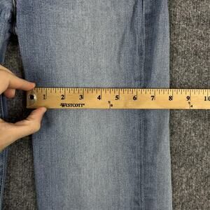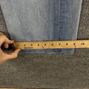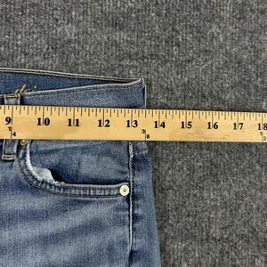 Brand details: 7 For All Mankind printed interior waistband logo with "dojo" script; woven back patch with brand name; interior care label with fiber content and care instructions.