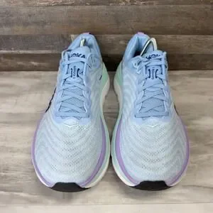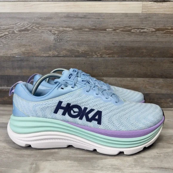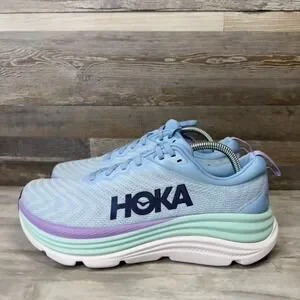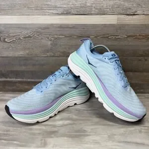 Experience the ultimate blend of stability and plush cushioning with these Gaviota 5 sneakers, designed to provide a smooth, balanced ride for every mile. The breathable engineered mesh upper in a refreshing Airy Blue and Sunlit Ocean palette keeps your feet cool, while the signature H-Frame technology offers support without sacrificing comfort. These high-performance trainers are in excellent pre-owned condition, though please note the size has been discreetly marked in ink on the back heels as shown in the photos. Perfect for long-distance road runs, daily walks, or all-day comfort during busy errands.