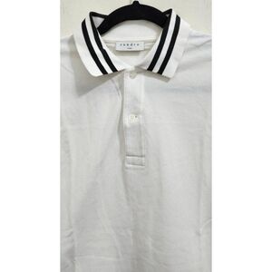 This is a Sandro Cotton Piqué Polo Shirt for men in size L. It is a white polo shirt made from cotton.