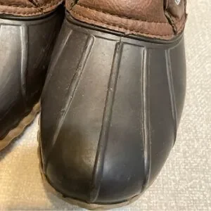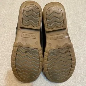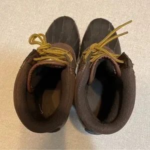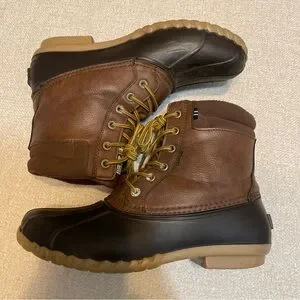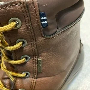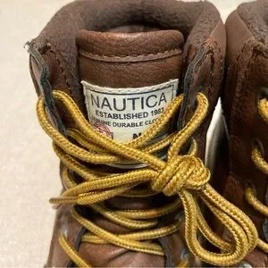 Sturdy brown leather boots by Nautica. Features durable yellow laces. Ideal for outdoor wear.