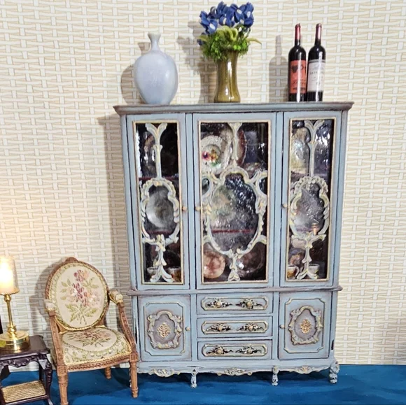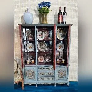 Bespaq original china cabinet customized by Siyadina in French Country. Comes complete with dinnerware.