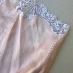 The Slip dress has a tiny red mark is right below the armpit, I don't noticed due to where the mark is located and because is silk I'm not good at removing stains so I did not attempt.
