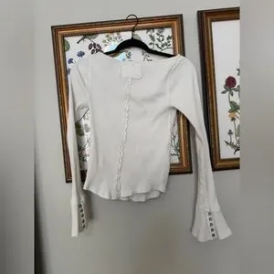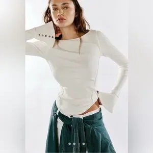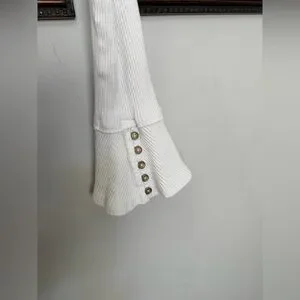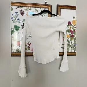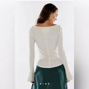 Free People We The Free “Soul Sister” Ribbed Flare Sleeve Top | Ivory | Size L