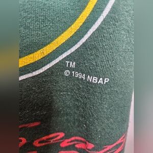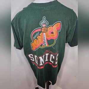 This Vintage 1994 Seattle Sonics T-shirt in Men's XL is a classic piece of NBA fan apparel. Featuring the team's iconic logo and colors, this shirt is perfect for basketball enthusiasts looking to show their support for the Seattle Sonics. Made with high-quality materials, this shirt is sure to be a comfortable and stylish addition to any fan's collection.