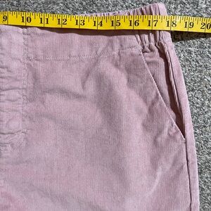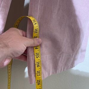 Soft corduroy fabric. Wide-leg silhouette. Front button and zip closure. Side pockets. Subtle dusty rose color.