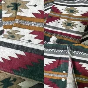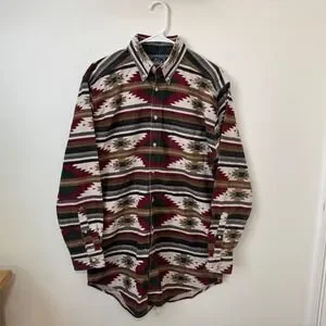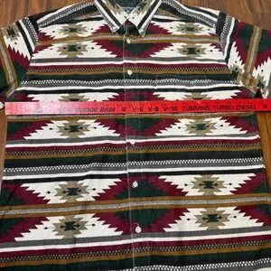 Iconic vintage Woolrich button down featuring a bold Aztec/southwestern print