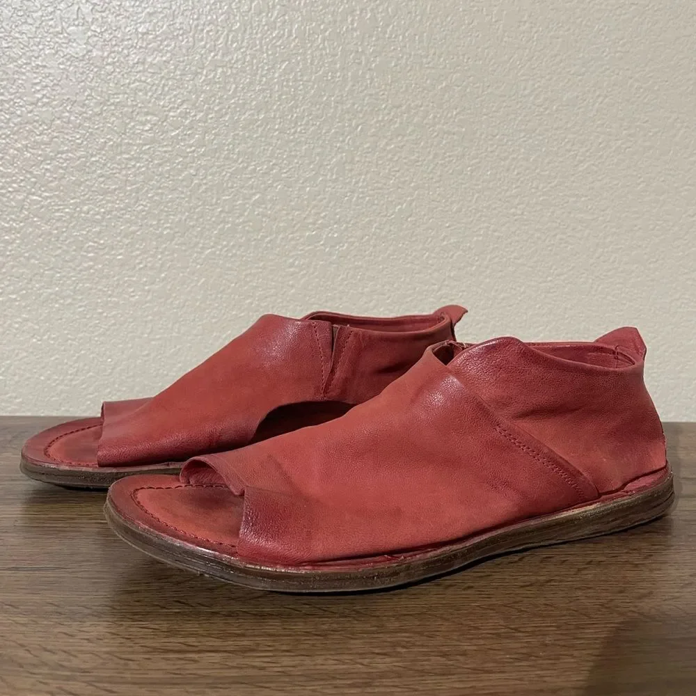 Step out in style with these red leather sandals. Perfect for casual outings, these sandals offer comfort and a sleek look.