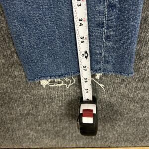 Pre-owned Citizens of Humanity Blaine jeans with gentle overall wear from prior use and laundering. Denim and seams are clean and intact with medium blue fading, whiskering, and factory-style distressing including raw cut hems with fraying at leg openings as shown. Zip fly, button closure, adjustable gold-tone buckle waist tabs, belt loops, and five-pocket design are secure and functional. Interior brand, size, and care labels are present; no original retail tags or packaging included.