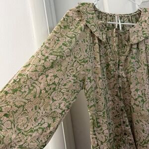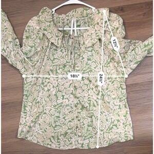 Keywords: Bohemian, Prairie, Whimsical, Botanical Print, Earthy, Gauze, Lightweight, Spring, Summer, Peasant Blouse, Art Nouveau, Shabby Chic, Feminine, Coastal Grandmother, Garden Party
