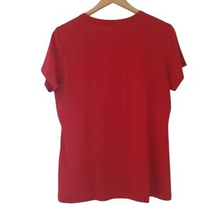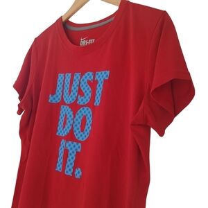 Bright Red Nike t-shirt featuring a bold Blue 'Just Do It' graphic in a Slim Fit