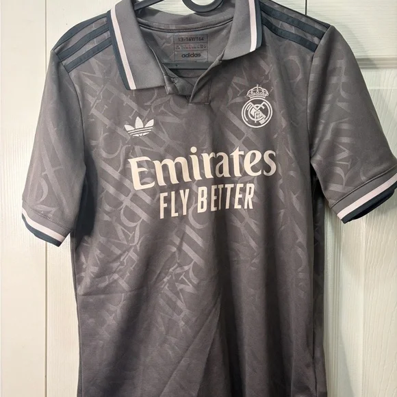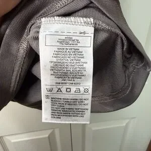 adidas short sleeve athletic top in solid gray. Soft performance knit fabric. Crew neckline with subtle rib trim. Branded logo print at inner neck. Clean, minimalist sport style.