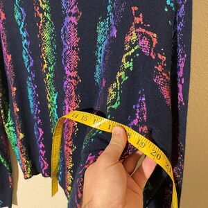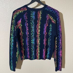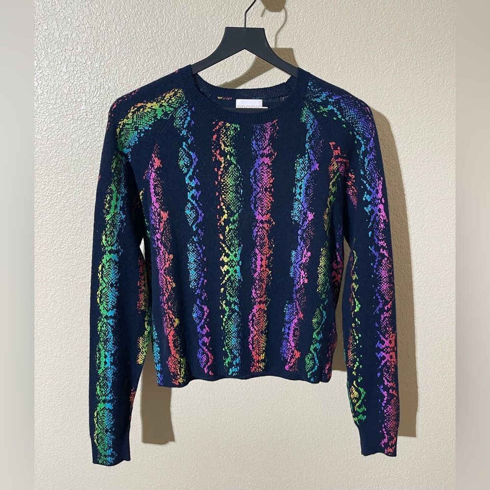 Vibrant multicolor stripes on a dark base. Soft cashmere material. Perfect for adding color to your wardrobe.