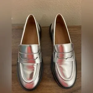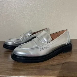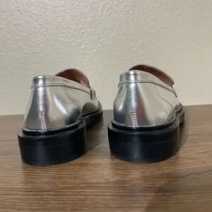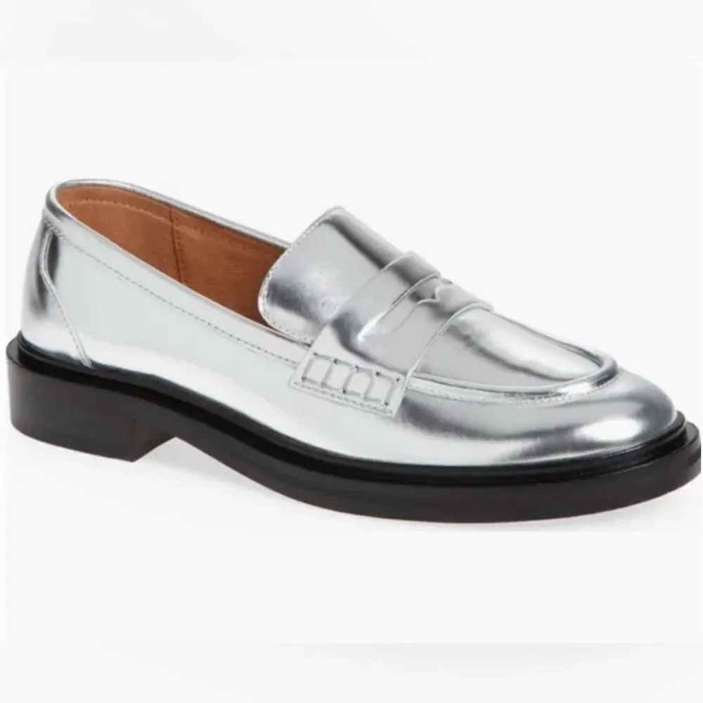 Step out in style with these sleek silver women's loafers. Perfect for any occasion, these shoes offer both comfort and elegance.