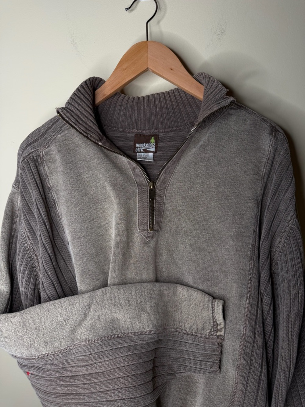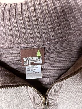 Vintage Weekendz Off Men’s Quarter Zip Brown Textured 100% Cotton Size x Large. Small red mark can’t really tell in person