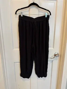 Effortlessly cool Anthropologie Hei Hei gauze balloon pants in classic black. Lightweight and breathable with a relaxed, flowy fit—perfect for everyday wear, travel, or that elevated casual look.