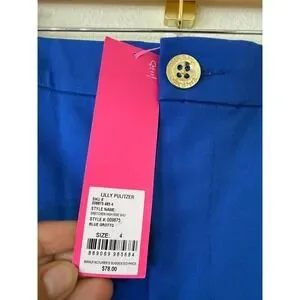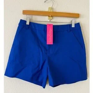 NWT. Lilly Pulitzer Gretchen High Rise Shorts in Blue Grotto. Crafted from a comfortable stretch cotton blend, these shorts feature a flattering high-waisted silhouette with a classic zip fly and gold-tone logo button closure. Functional side pockets and decorative back welt pockets. Rise 10in, inseam 4.5in, waist 15in.
