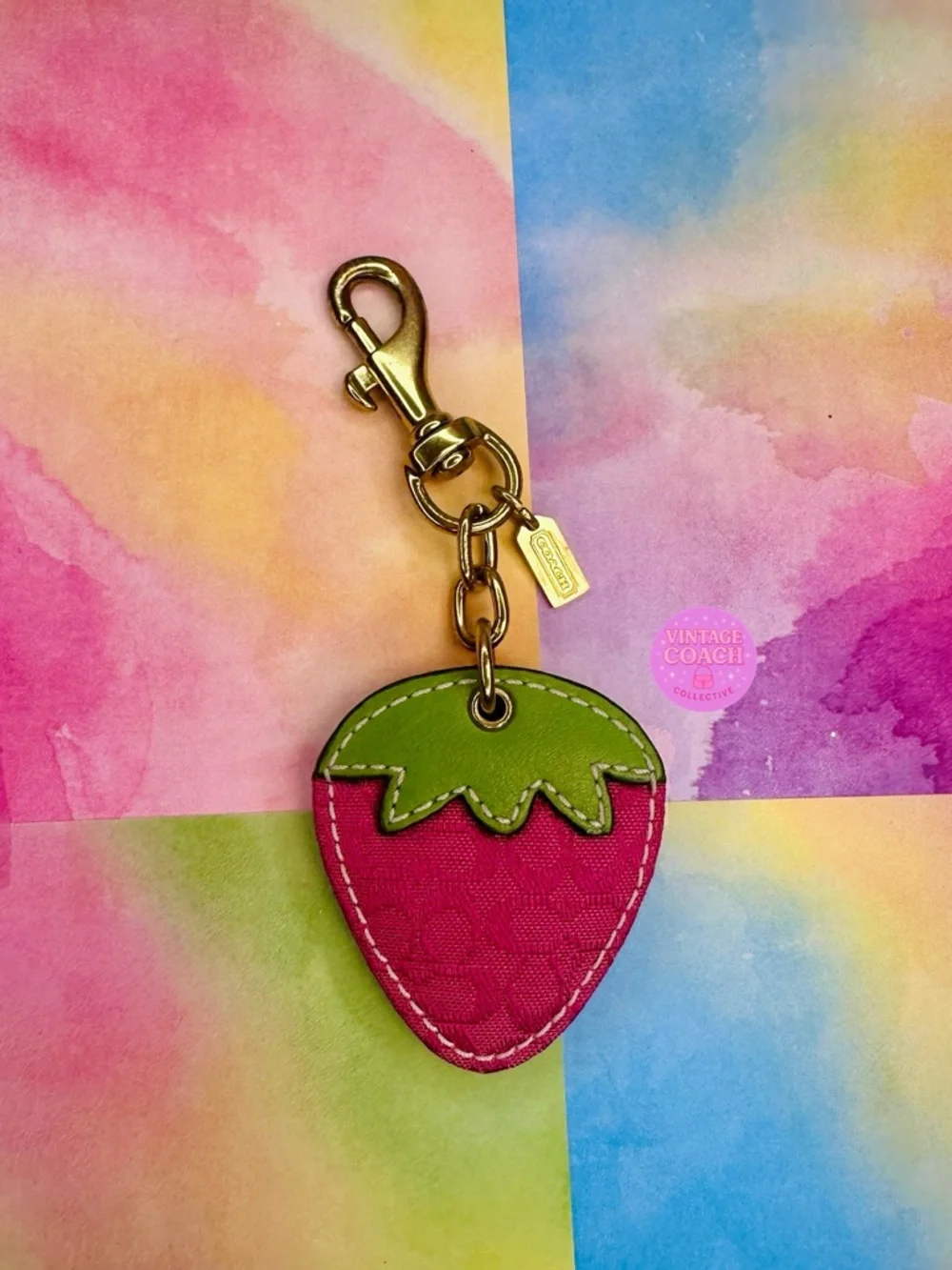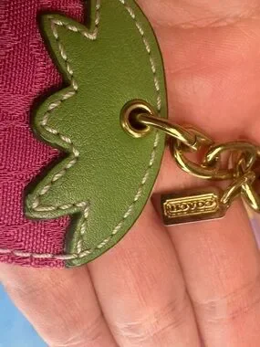 Authentic Coach strawberry charm featuring gold-tone hardware and signature monogram detailing. A super fun and trendy Y2K accessory that adds the perfect pop to any bag.
