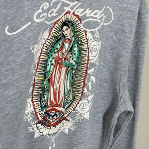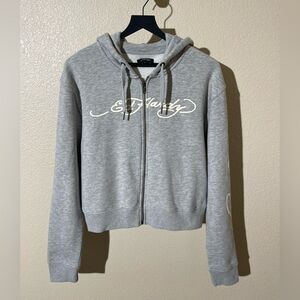 Chic and cozy Ed Hardy hoodie. Features a stylish zip-up design. Ideal for casual wear.