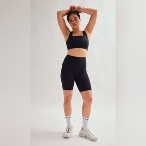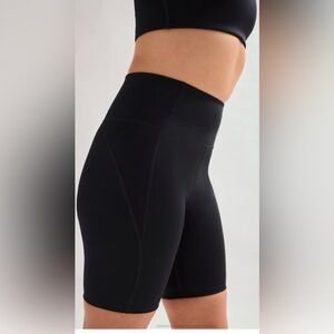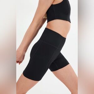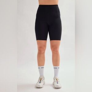 Compressive, high-rise bike shorts with an 8.5” inseam. Ride up-resistant, down for whatever.