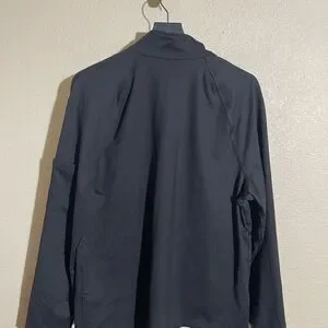 Stylish black zip-up jacket. Long sleeves. Perfect for casual wear.