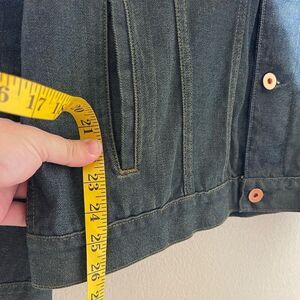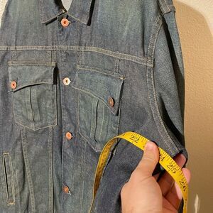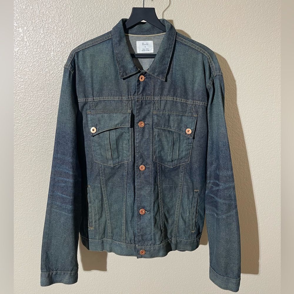 Classic denim jacket with button closure. Features chest pockets and a tailored fit.
