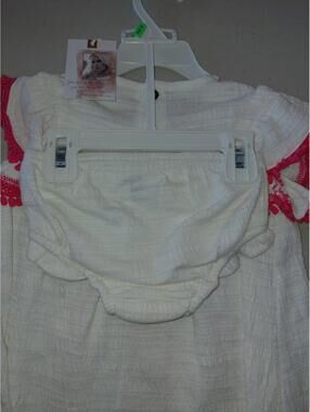 The Jessica Simpson 2 piece baby summer dress in size 12/18 months is a stylish and adorable outfit for little ones. The multicolor design and short dress length make it perfect for the summer season. This unisex baby and toddler dress set from the renowned brand Jessica Simpson is sure to make your baby stand out and look cute as a button. Perfect for a summer day out or a special occasion, this dress set is a must-have for any parent's wardrobe.