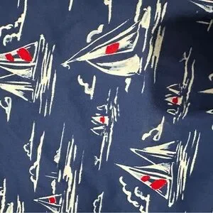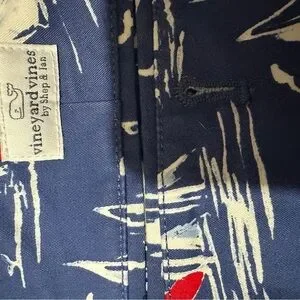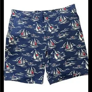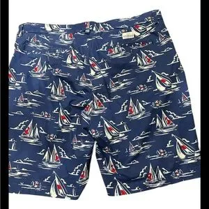 Embrace the classic maritime look with Vineyard Vines board shorts, featuring a vibrant blue and red sailboat pattern. These stylish swim shorts are perfect for beach outings or sailing adventures, offering a preppy East Coast aesthetic.