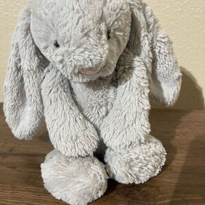 Soft plush bunny with long ears. Perfect for cuddling.