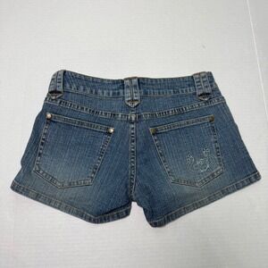 Super cute Y2K low rise shorts with embroidered monkey detailing. Baby tee outfit vibes.