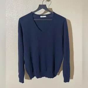 Elevate your wardrobe with this classic navy V-neck sweater. Perfect for any occasion, offering both style and comfort.