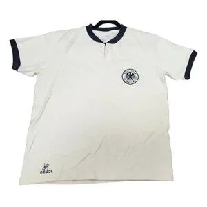 This Authentic Adidas Germany National Team retro football jersey in size 2XL is a collectible piece for fans of the German national soccer team. Made by Adidas in Germany, this beige jersey features the traditional colors and design of the Germany national team. Perfect for showcasing team pride while playing or watching soccer matches, this jersey is a must-have for any dedicated fan.