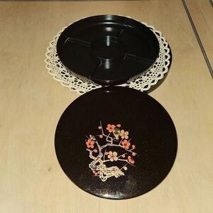 Vintage Japanese brown floral lacquerware serving tray with lid