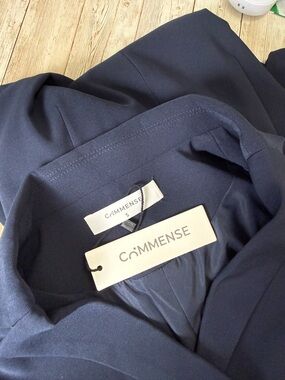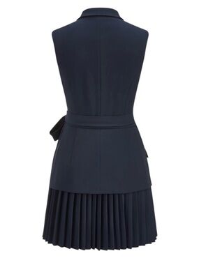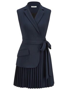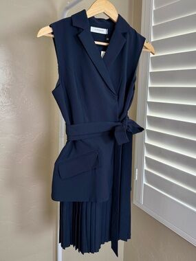 Commense NWT Navy Blue Belted Pleated Sleeveless Blazer Mini Dress
